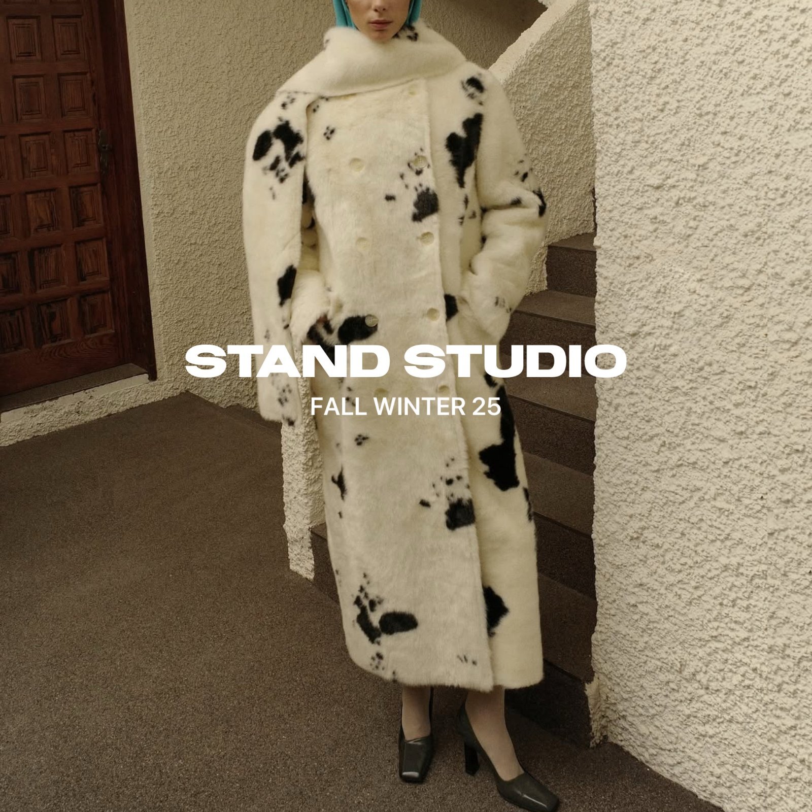 [STAND STUDIO]Palmer Faux Cow Fur Coat カウハイド エコファーコート - Off White/Black