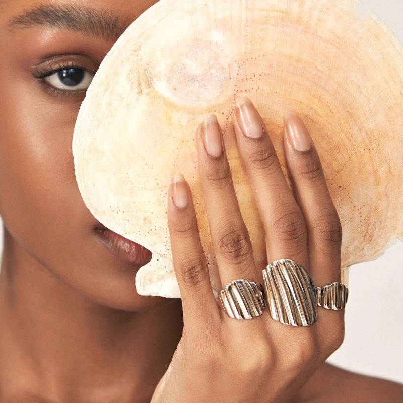 有機的な波紋が指に沿って完璧にカーブし快適な着用感とシルエットを実現。