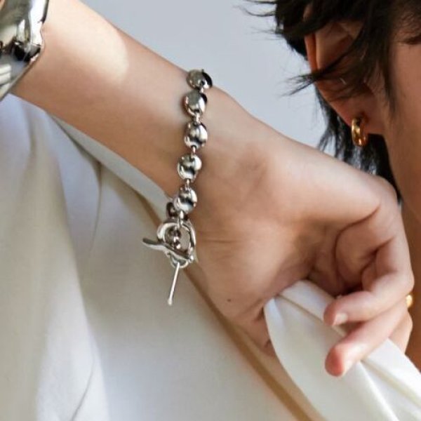 ハンドメイドで鋳造されたチェーンとパーツは光沢があり手元が華やかに。