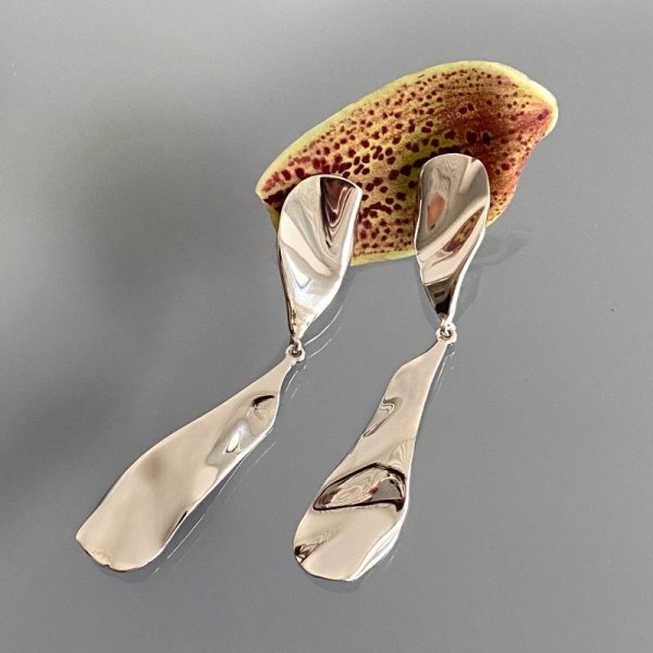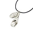 光沢のある滑らかな形状の花びら型のペンダントがサテンコードに吊り下げられた、スタイリッシュなデュオネックレス。