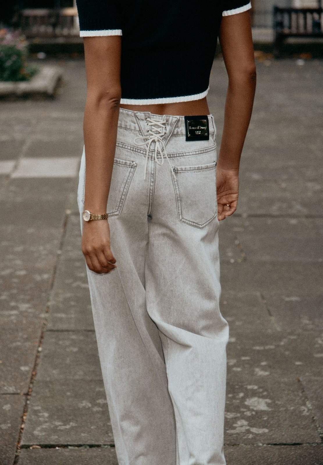 調節可能なレースバックのウエストバンドディテールや、リベットやボタンのロゴディテールなど細部に拘ったデザイン