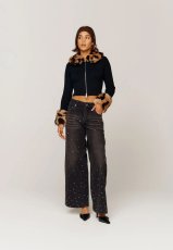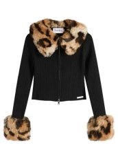 取り外しが可能なふわふわフェイクファーの襟とカフスと、リブニット素材で仕立てられたカーディガン。