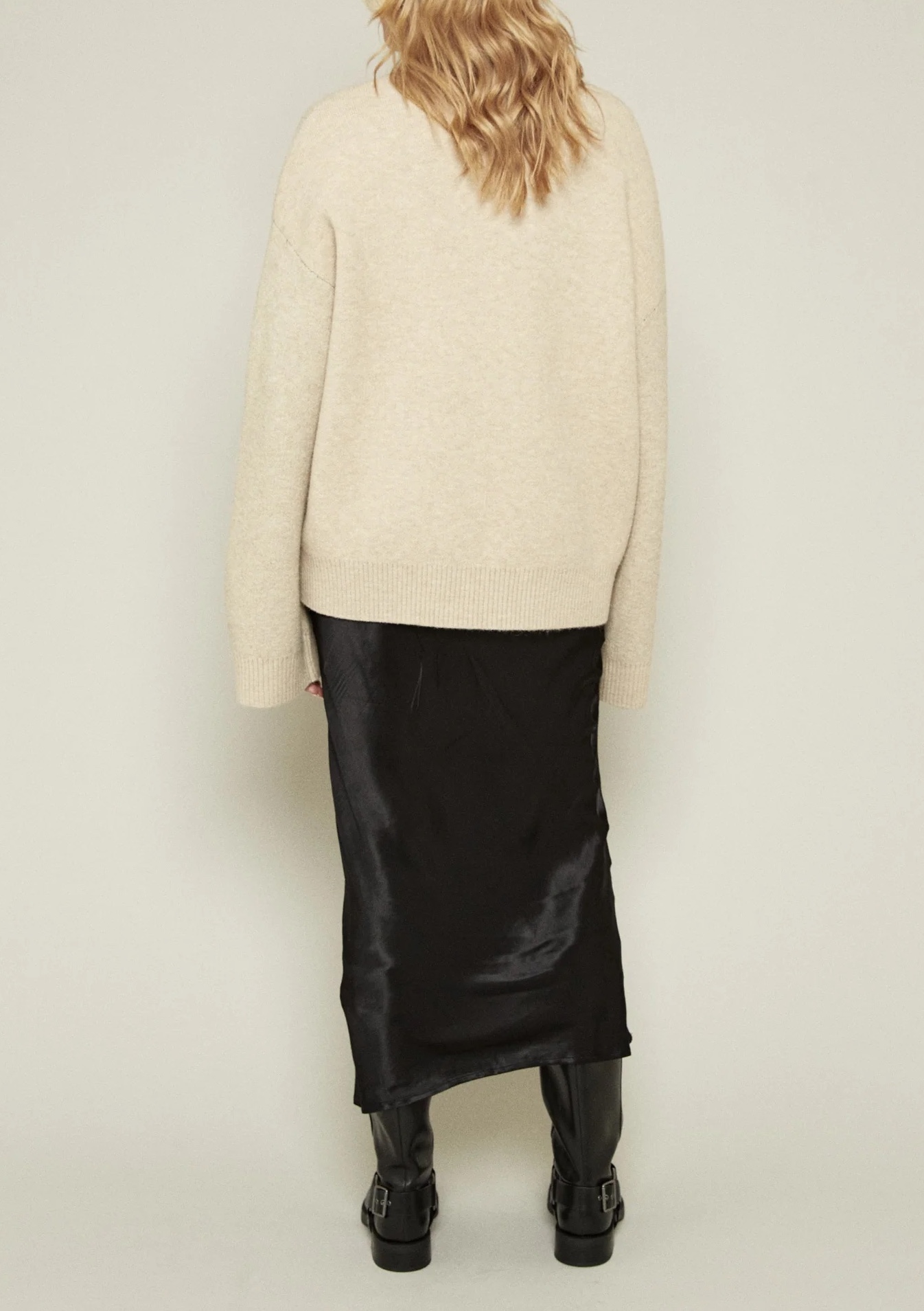 ゆったりとしたシルエットはレイヤードスタイルにもぴったりで、シンプルなボトムスと合わせるだけで洗練された雰囲気を演出できます。