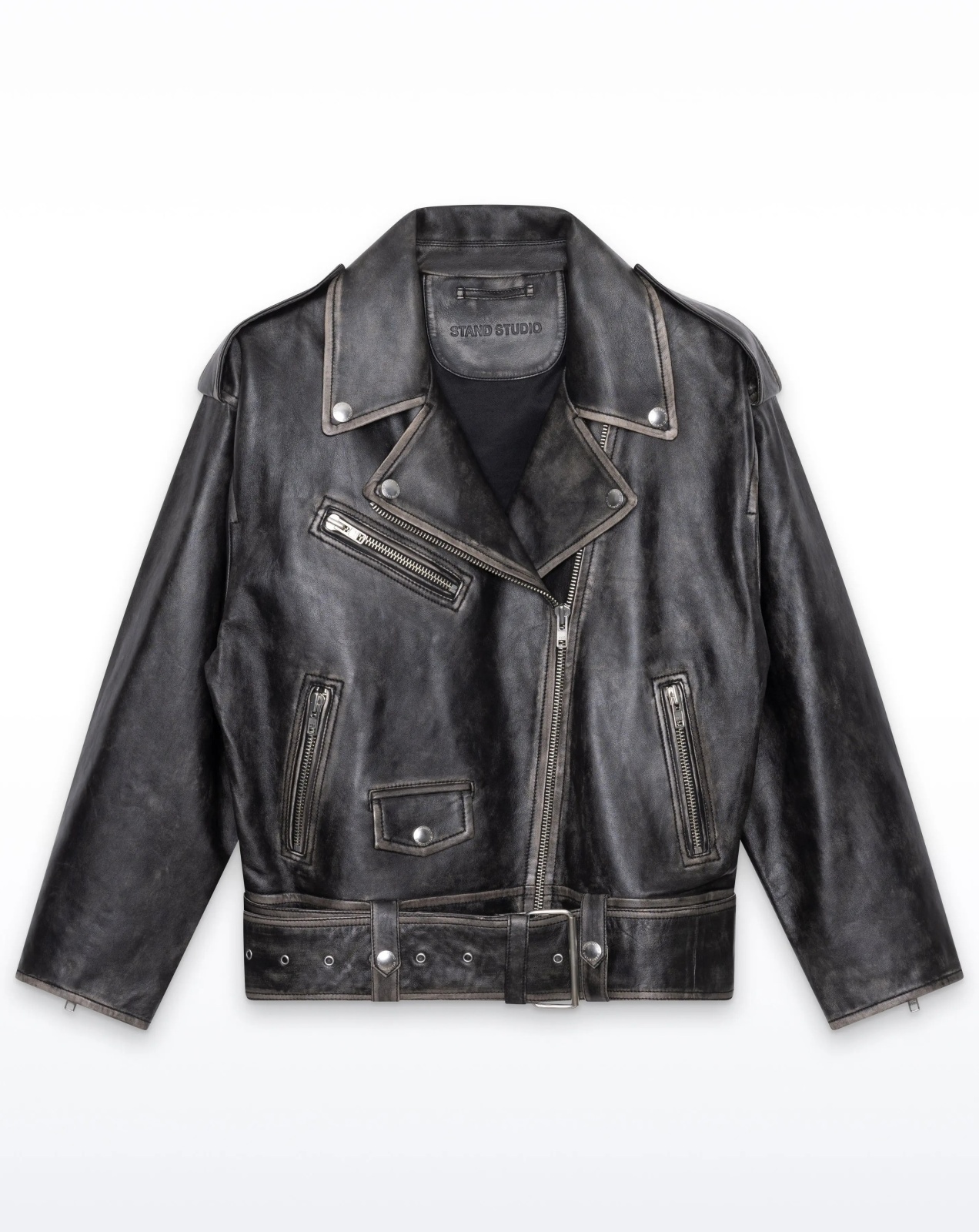 STAND STUDIO - Isobelle Biker Leather Jacket バイカーレザージャケット - Worn Black