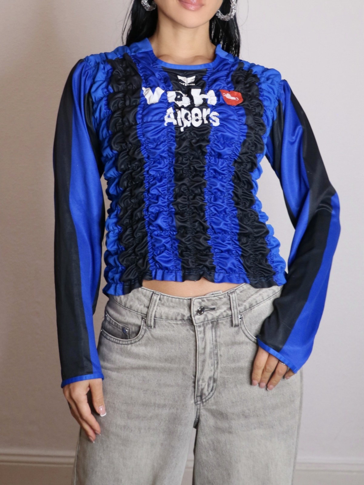 ユーズドまたは新品同様のスポーツTシャツをベースに、独自の絞り加工を施した一点物のリメイクアイテム。