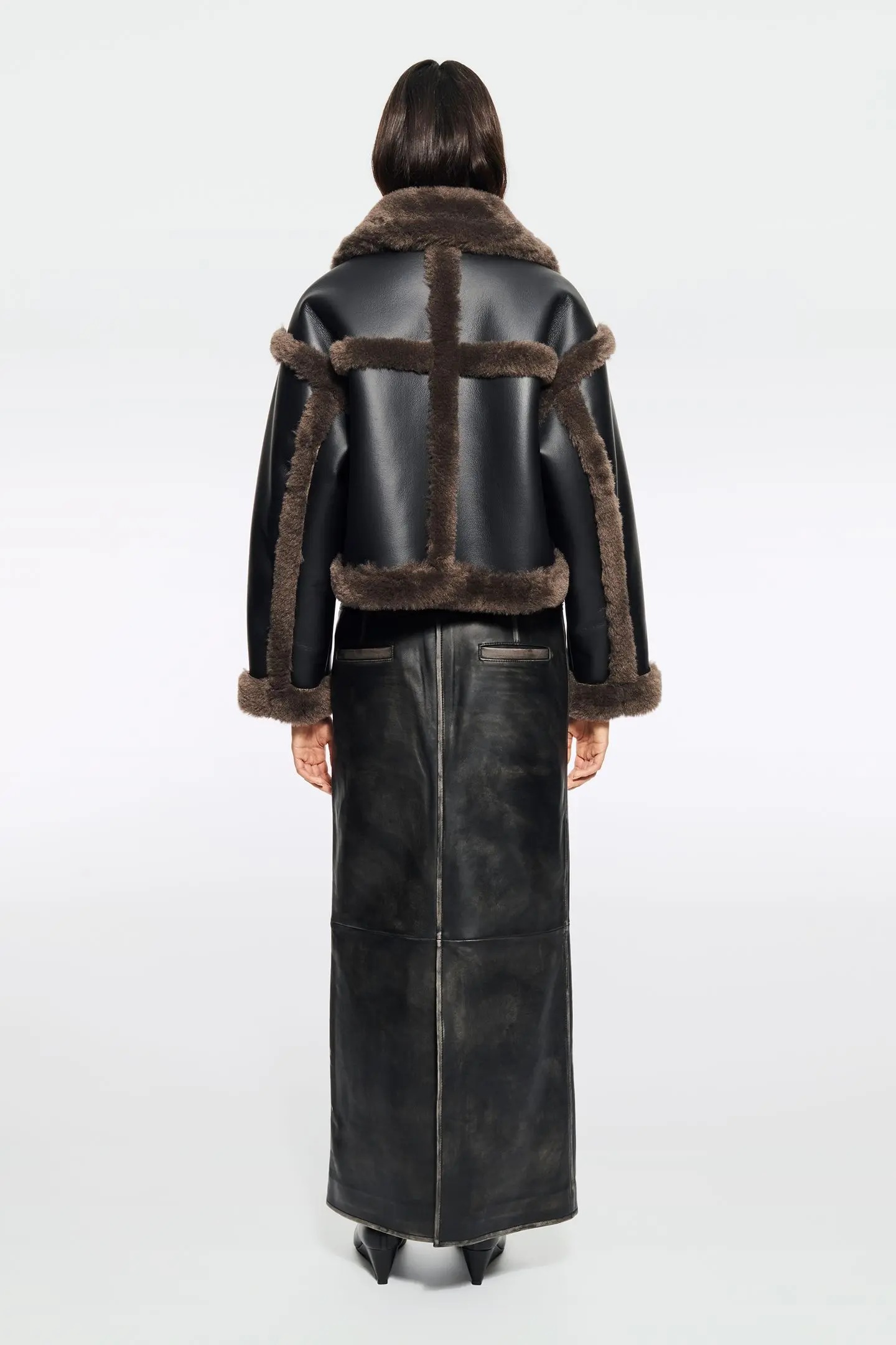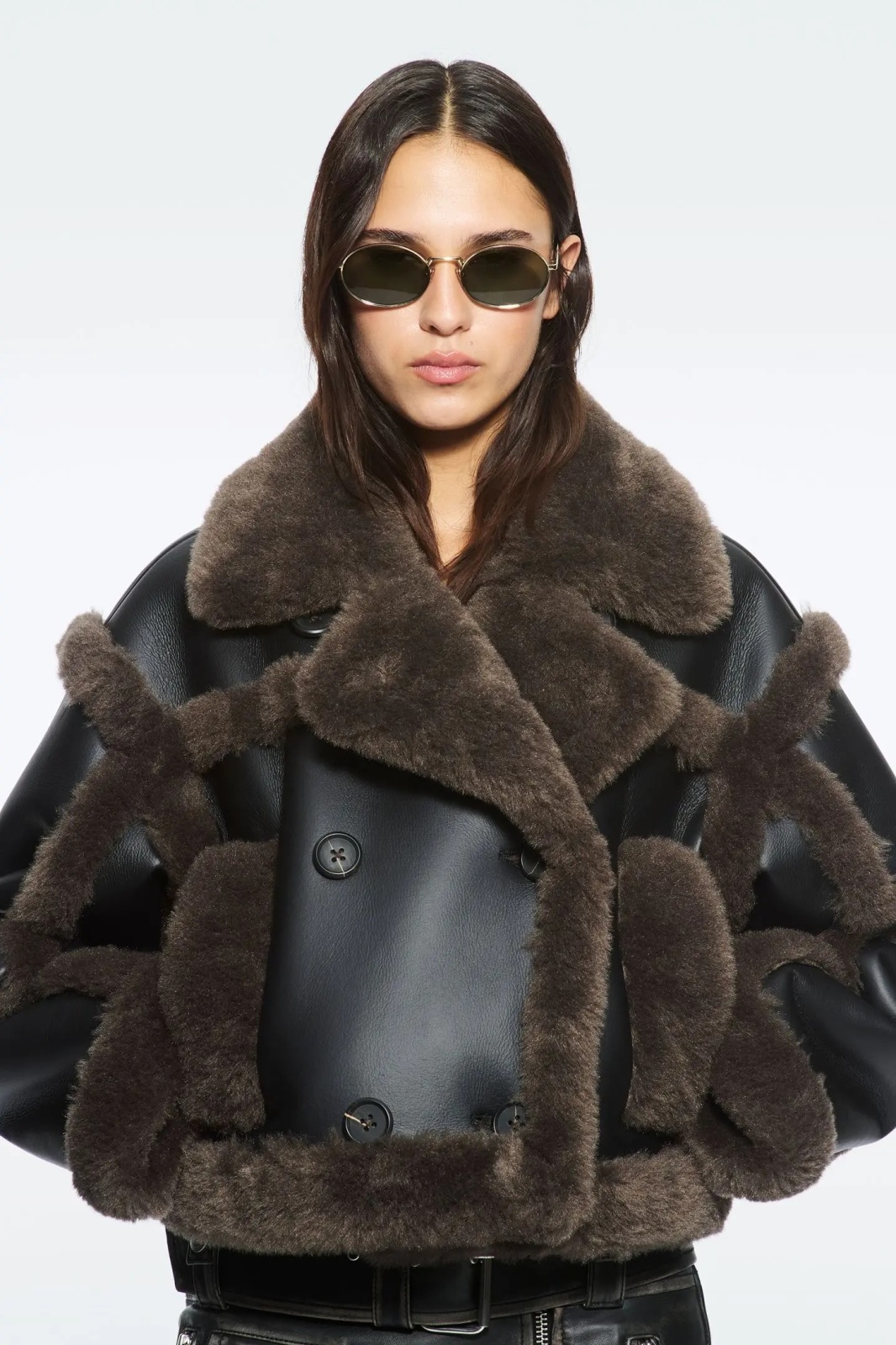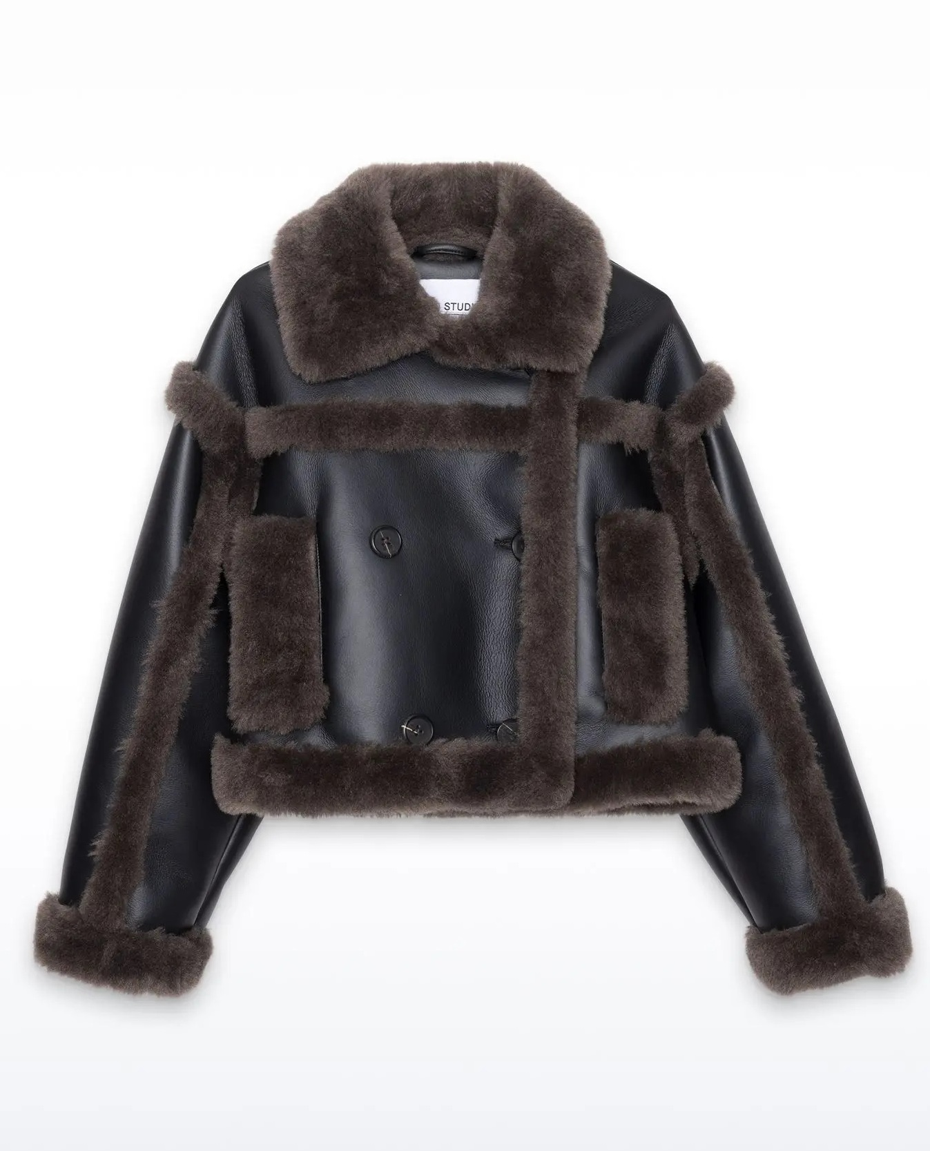 STAND STUDIO - Kristy Faux Shearling Jacket クロップドフェイクシアリングジャケット - Black/Dark Brown