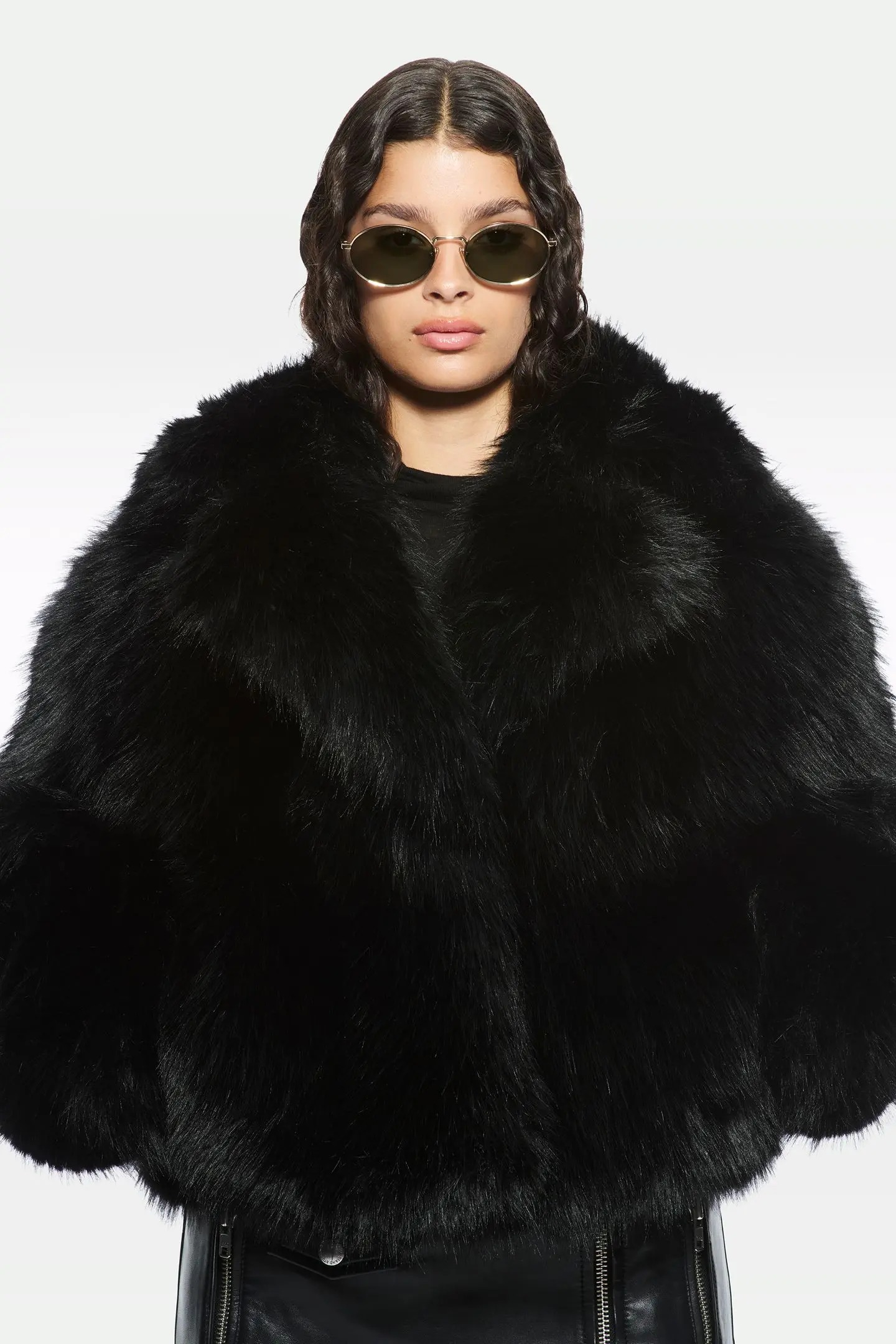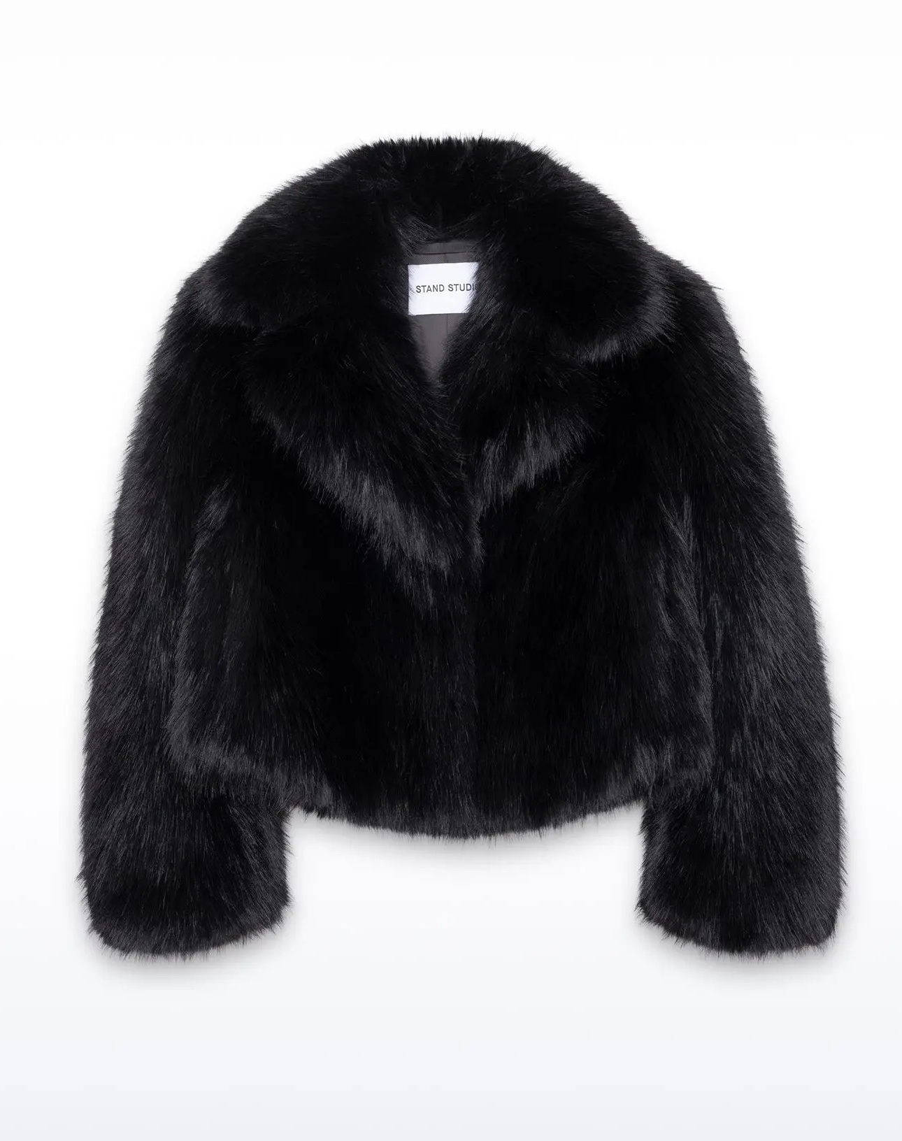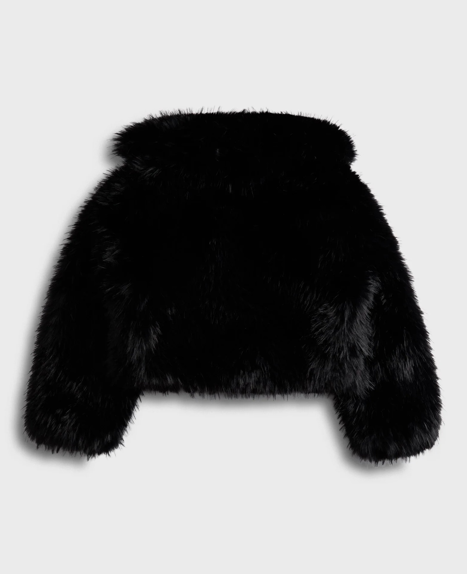 フォックスファーを再現したリアルな毛並みとボリューム感が印象的な、ソフトなエコファーを使用したジャケット。