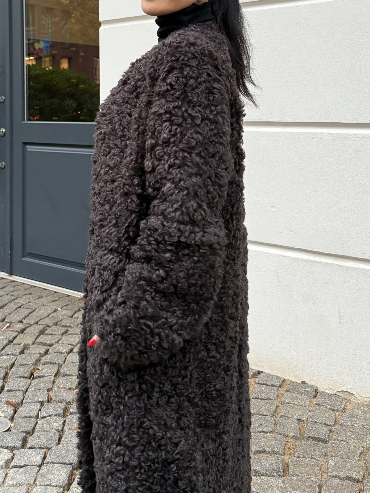 [STAND STUDIO]Renata Curly Faux Fur Coat カーリーエコファーコート - Dark Chocolate