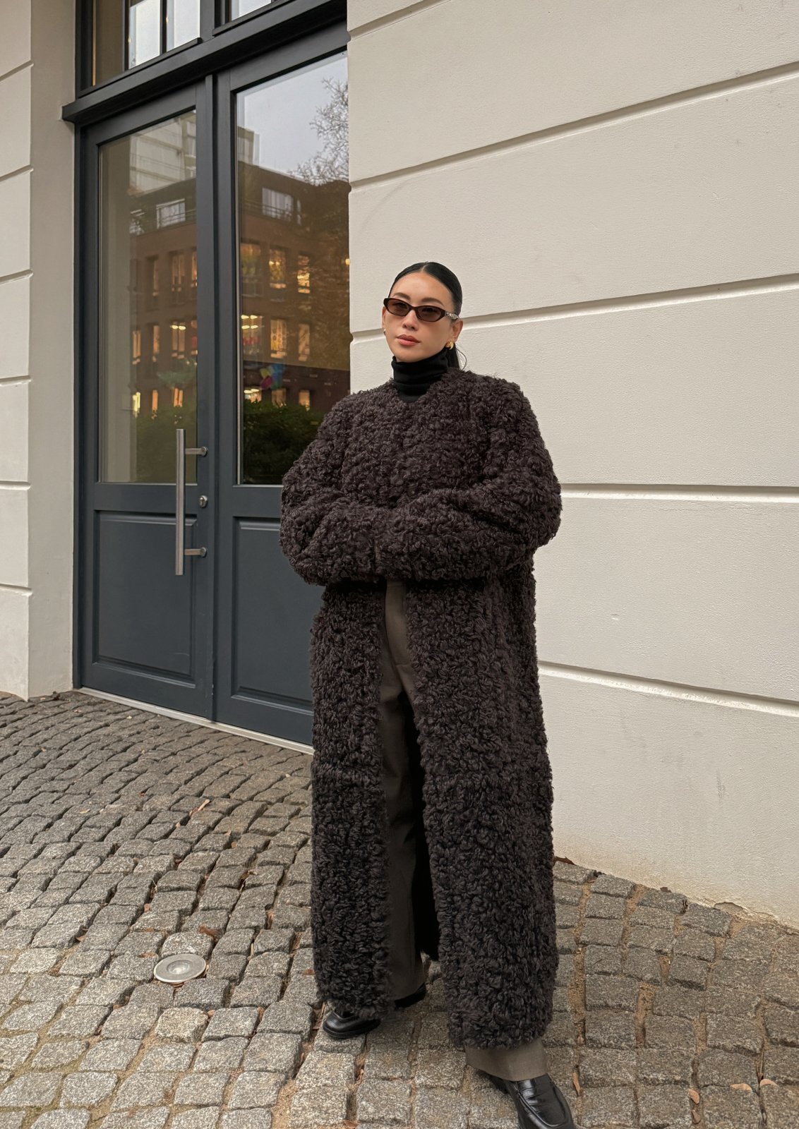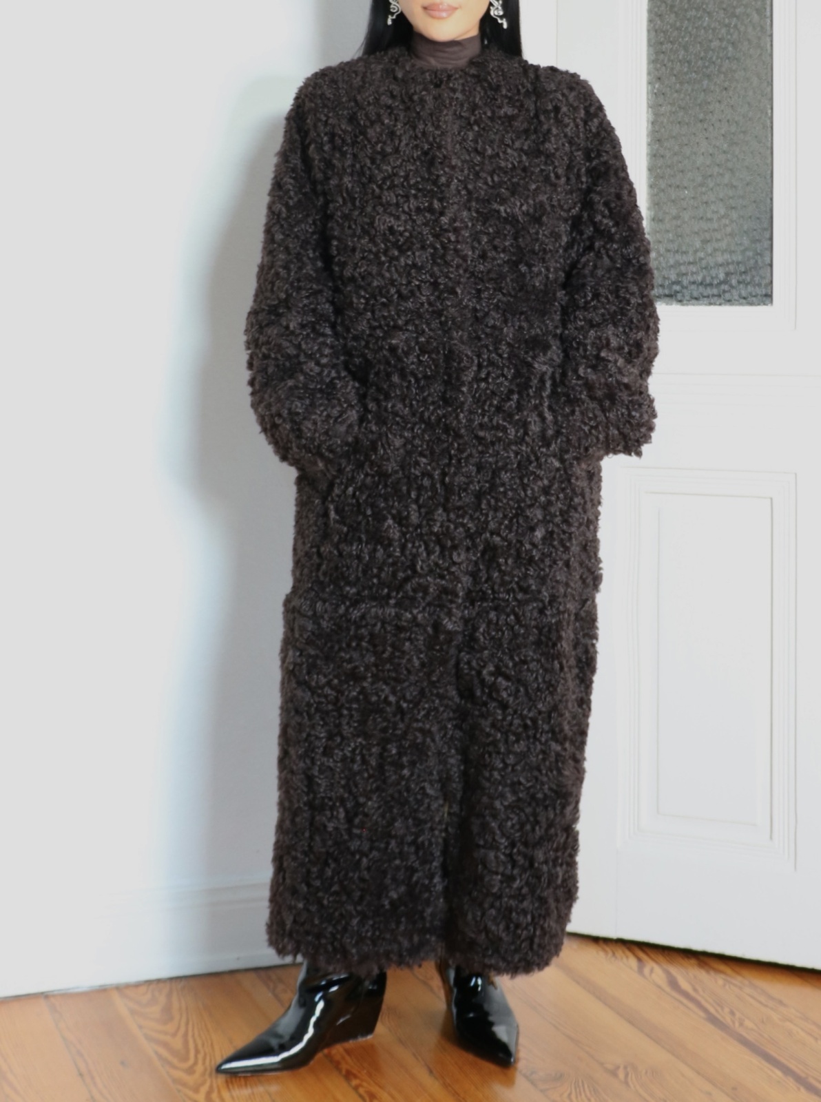 - > [STAND STUDIO]Renata Curly Faux Fur Coat カーリーエコファーコート - Dark Chocolate