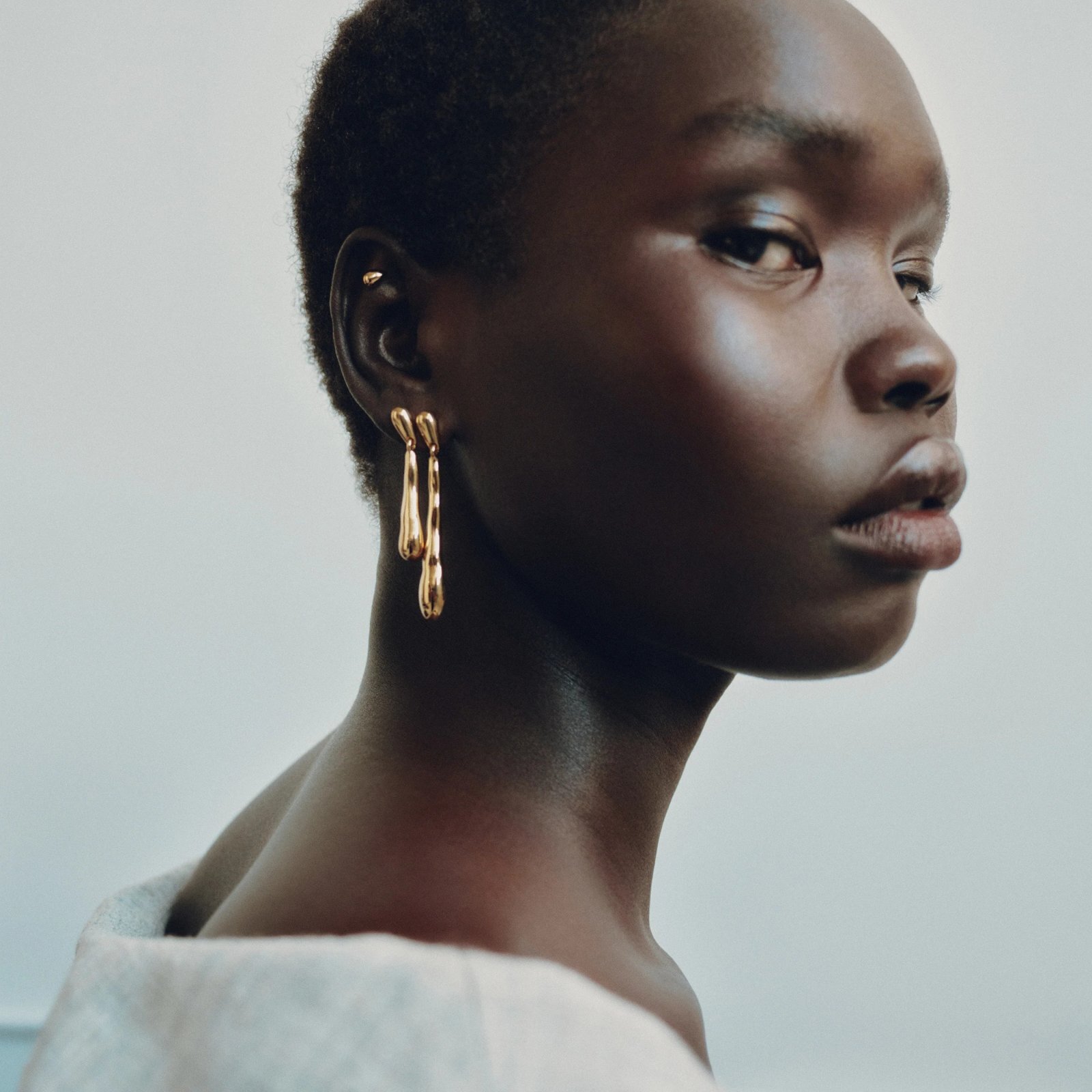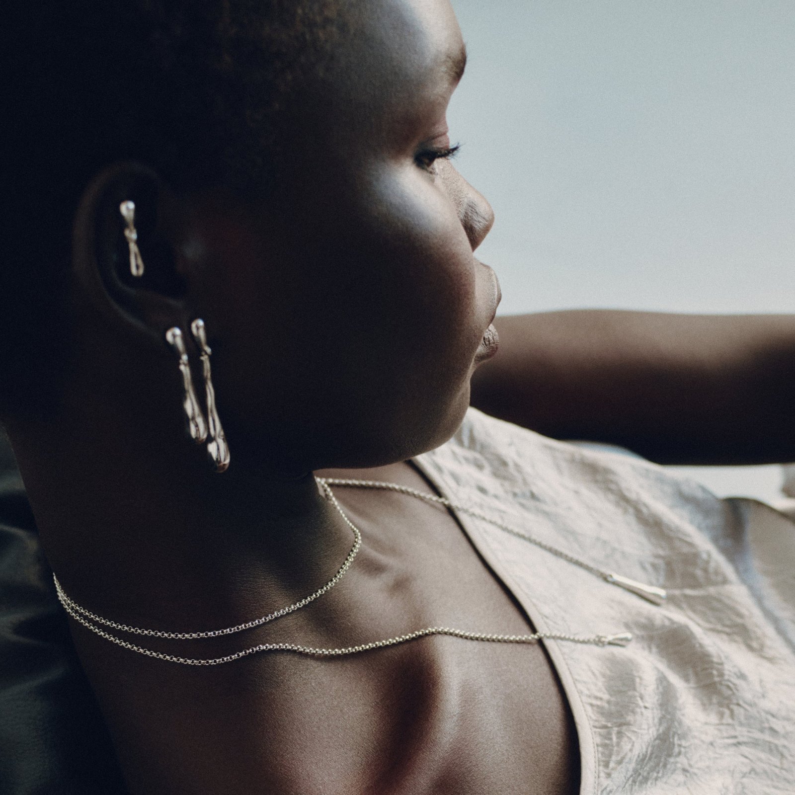 Molten drops with just the right drip. Sleekly linked to move with you from day to night.