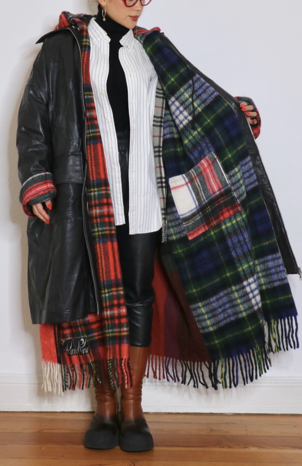Crafted from deadstock leather and premium wool blanket fabrics.