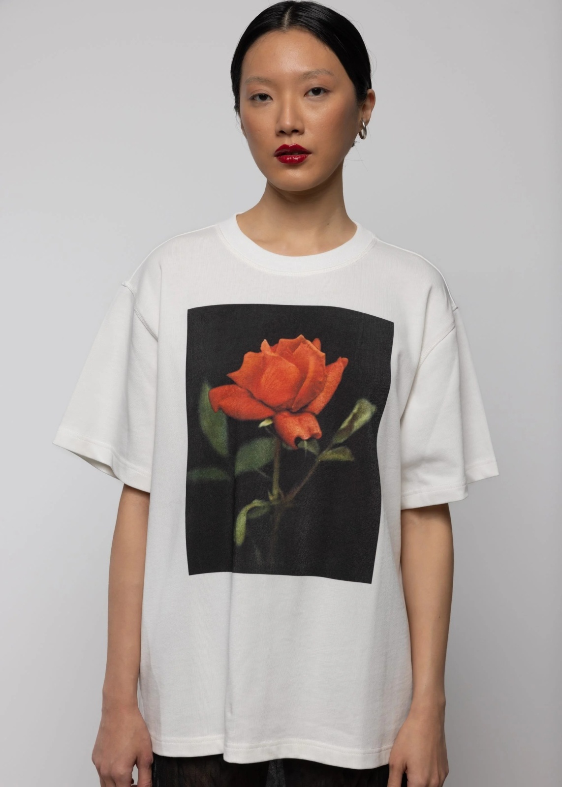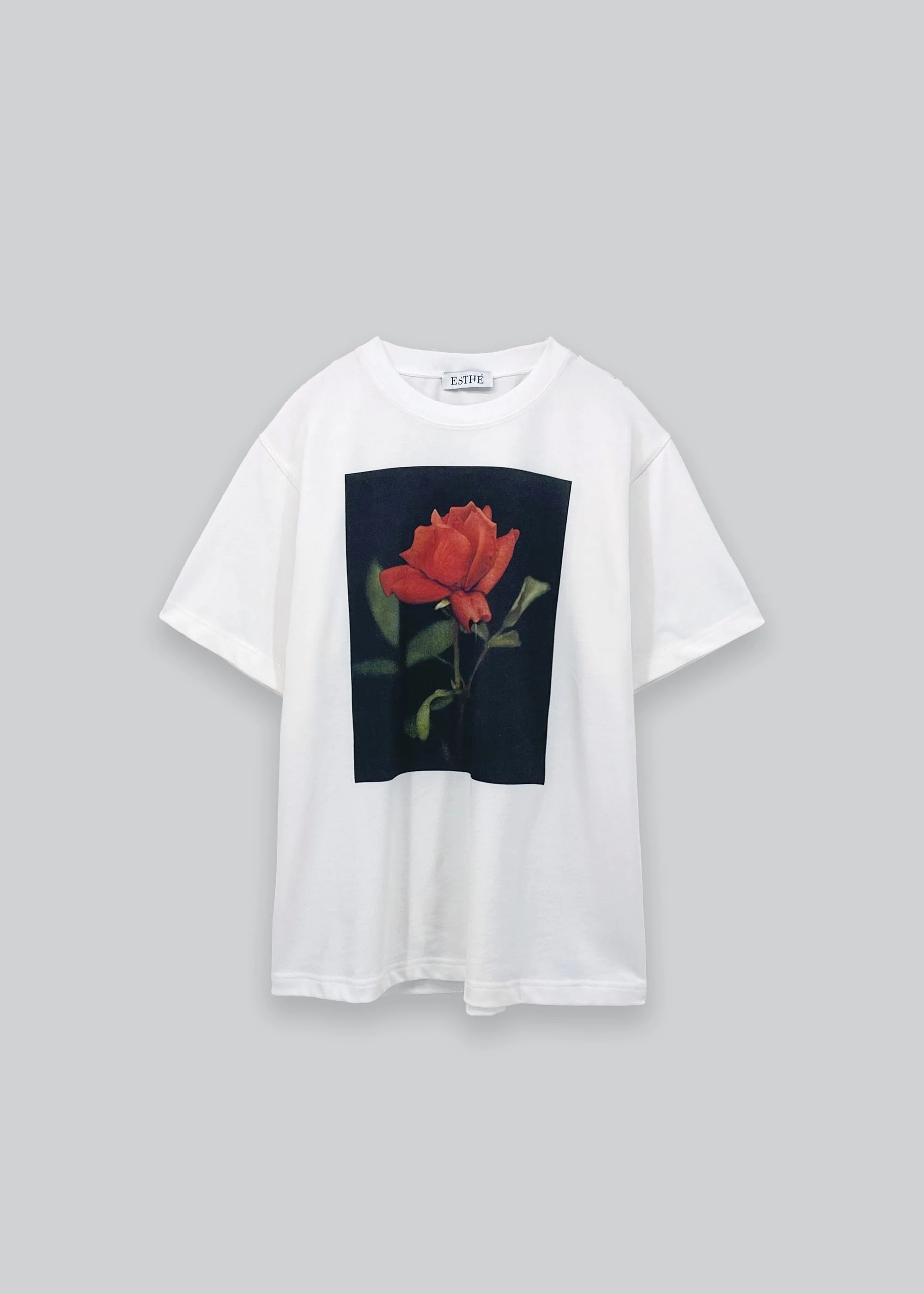 【12月下旬発送】[ESTHE]Rose Print Cotton T-Shirt - WHITE